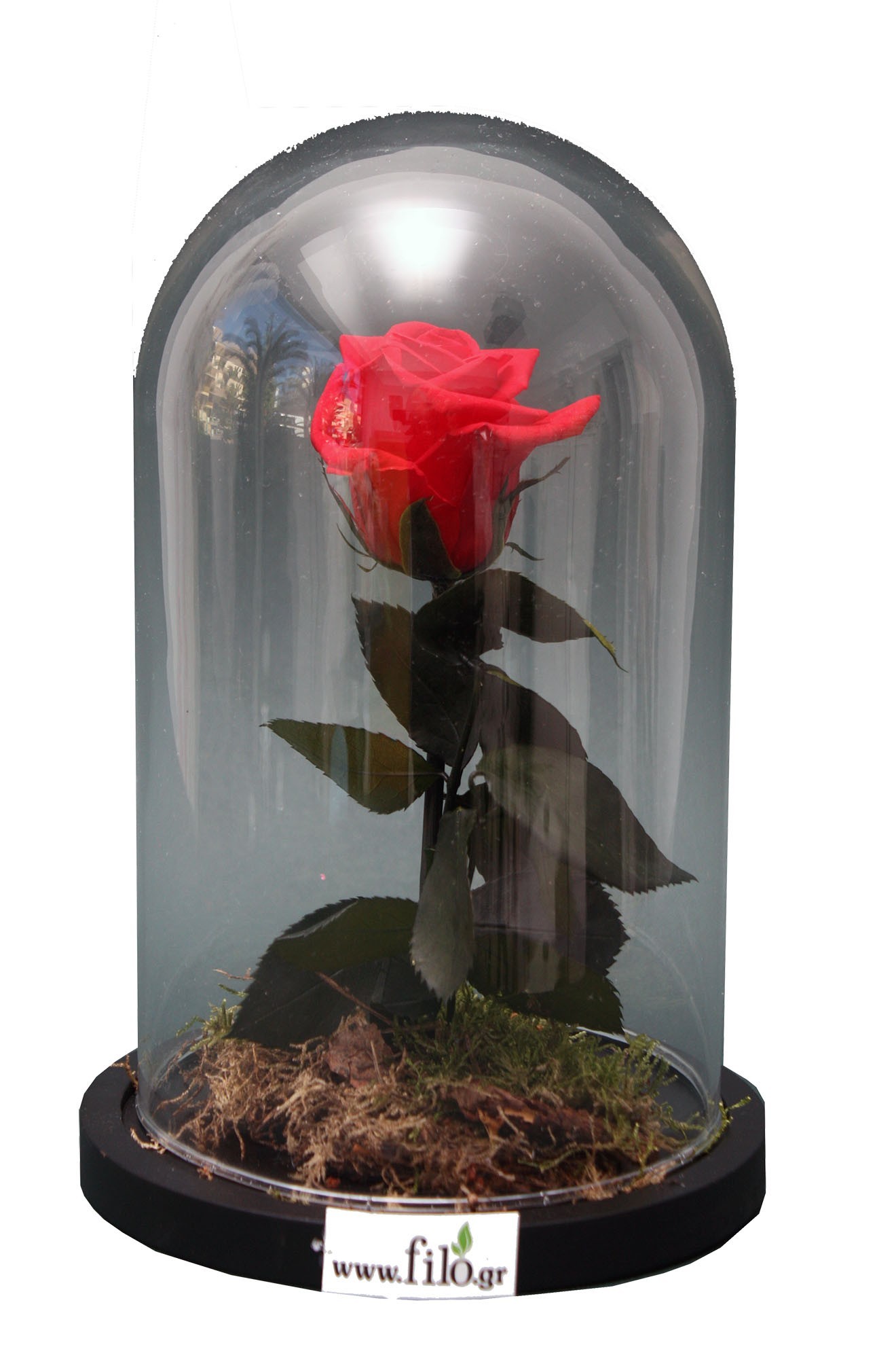 Αυτό το τριαντάφυλλο είναι από τα παραμύθια!!! Πανέμορφο τριαντάφυλλο με κοτσάνι σε γυάλινο θόλο που διατηρείται για 10 χρόνια!!! Υπάρχει σε διάφορα χρώματα,μαύρο,λευκό, σωμόν, κίτρινο,γαλάζιο.