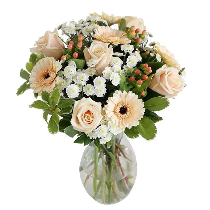 A bouquet of mixed flowers in soft shades is an elegant choice appropriate for all circumstances!