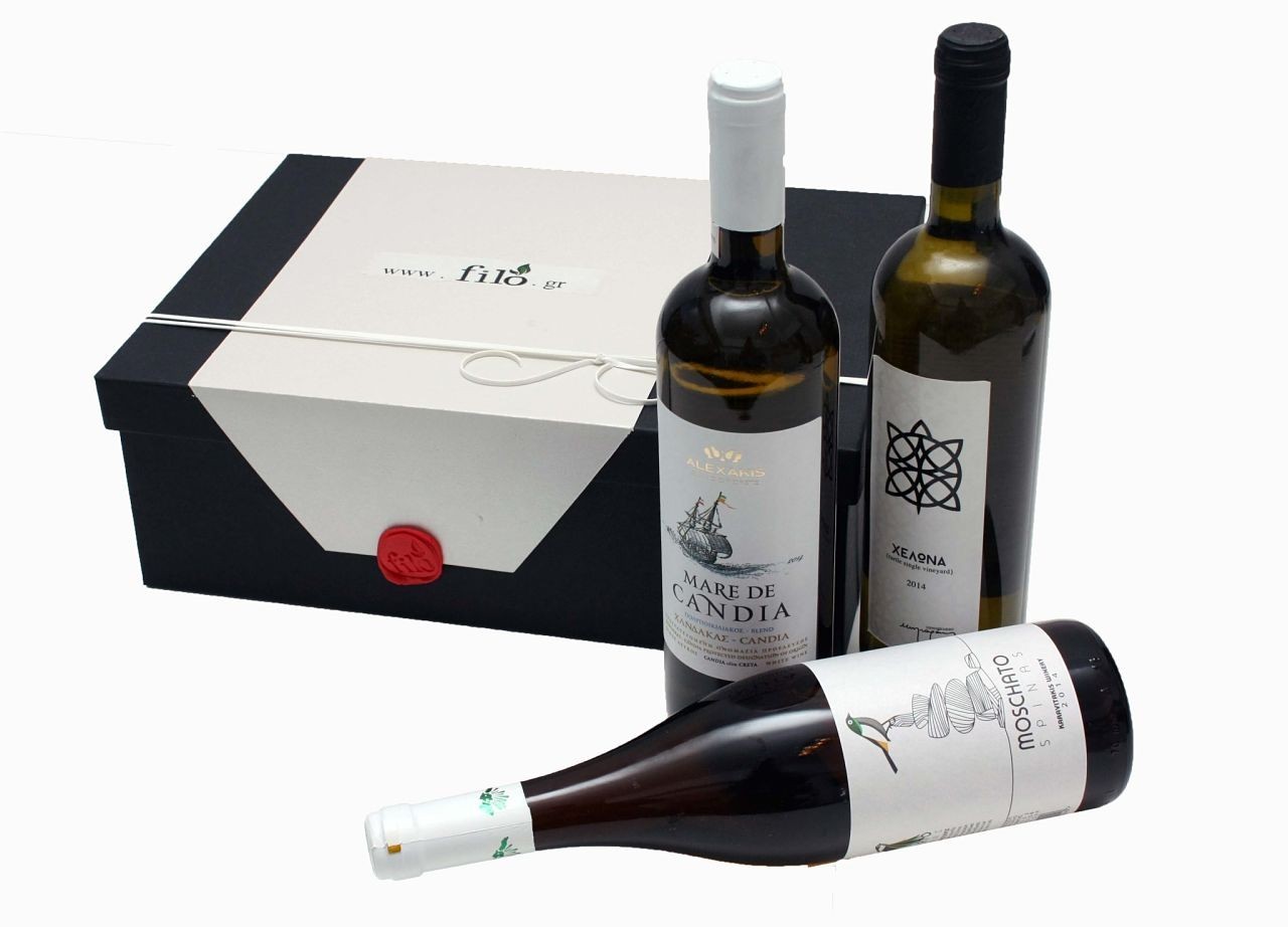 Three Special Cretan White Wines In A Box